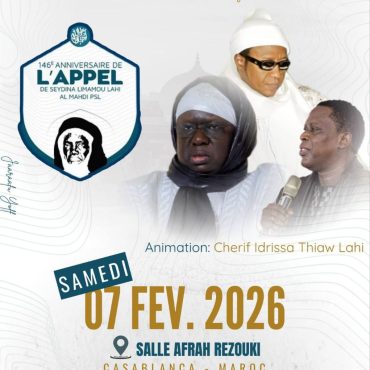 07 Fév 2026 Casablanca — Casablanca 146ème APPEL AU MAROC- Samedi 07 février 2026 Dahira Chérif Ousseynou LAHI En savoir plus