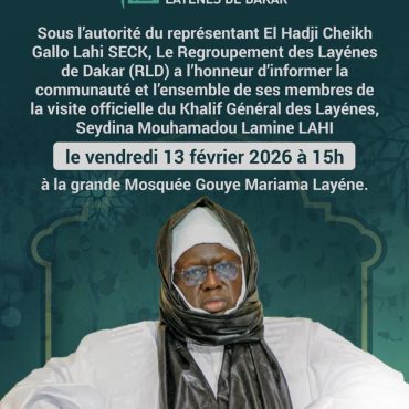 13 Fév 2026 Gouye Mariama Layène — Dakar VISITE OFFICIELLE DU KHALIF DES LAYENES A DAKAR- Vendredi 13 février 2026 Regroupement des Layènes de Dakar En savoir plus