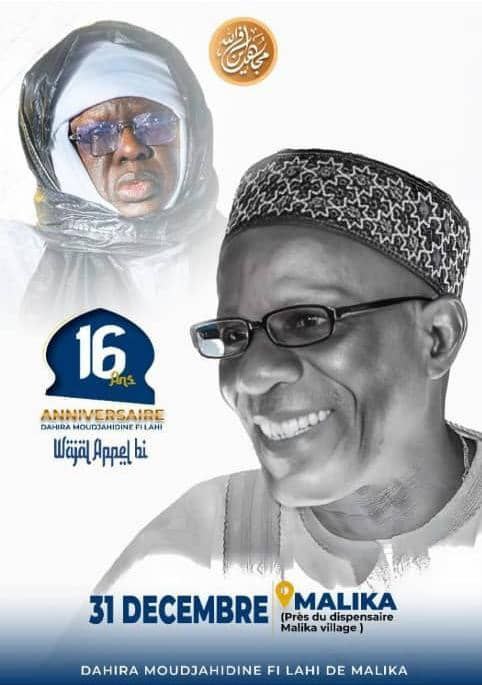 Le dahira Moudjahidine Fi Lahi vous convie à leur 15è anniversaire qu’il organise le mardi 31 décembre 2025 à Malika.