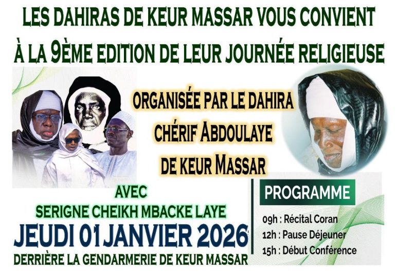 9ème édition JOURNEE RELIGIEUSE DU DAHIRA CHERIF ABDOULAYE DE KEUR MASSAR- Jeudi 1er janvier 2026