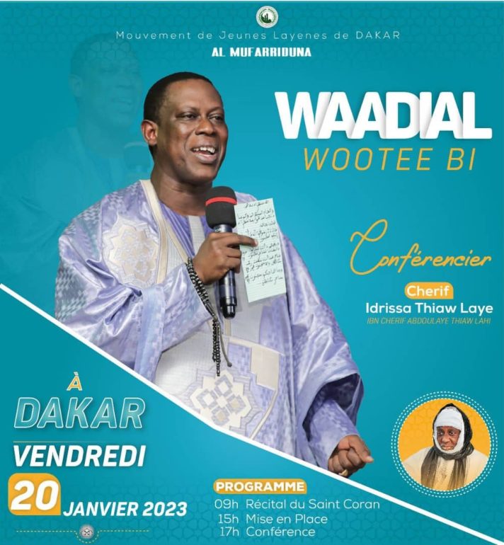 Le Mouvement des Jeunes Layènes de Dakar, Al Moufarridoune, organise sa journée de sensibilisation sur la Commémoration de l’Appel de Seydina Limamou LAHI (psl). Elle aura lieu le vendredi 12 décembre 2025 et sera animée comme d’habitude par Chérif Idrissa Thiaw LAHI ibn Seydina El Hadji Abdoulaye Thiaw LAHI.