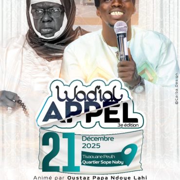 21 Déc 2025 Quartier Sope Naby — Keur Massar AVANT-PREMIERE APPEL A TIVAOUANE PEULH- Dimanche 21 décembre 2025 Dahira Ahloulahi de Tivaouane Peulh En savoir plus