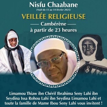 03 Fév 2026 Préau de Cambérène — Dakar NISF CHÂ’BÂN OU LA CÉLÉBRATION DE LA NAISSANCE DE SEYDINA LIMAMOU LAHI (PSL)- Mardi 03 février 2025 Ahlu lahi En savoir plus