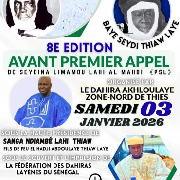 28 Déc 2025 Diamalaye de Cambérène — Dakar NIAANU CHERIF OUSSEYNOU LAHI- Samedi 28 décembre 2025 Fédération des Dahiras Layènes du Sénégal En savoir plus
