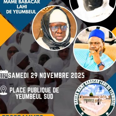 01 Nov 2025 Grande Mosquée de Dakar — Dakar JOURNEE THIERNO MBAYE SYLLA- Samedi 1er novembre 2025 Famille Thierno Mbaye Sylla En savoir plus