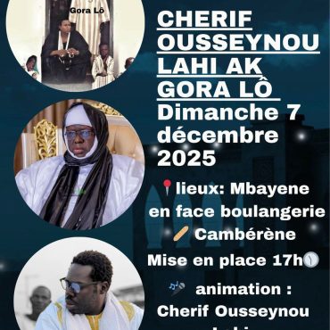 07 Déc 2025 Mbayène en face de la Boulangerie — Dakar 4ème ÉDITION SARGAL CHÉRIF OUSSEYNOU LAHI ET GORA LO LAHI- Dimanche 07 décembre 2025 Chérif Ousseynou Lahi dit Michael En savoir plus