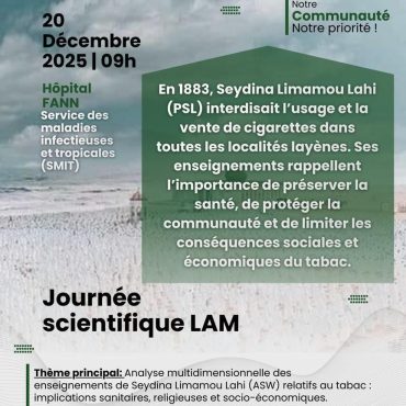 20 Déc 2025 Hôpital FANN — Dakar JOURNEE SCIENTIFIQUE LAYENE ASSISTANCE MEDICALE- Samedi 20 décembre 2025 Layène Assistance Médicale En savoir plus