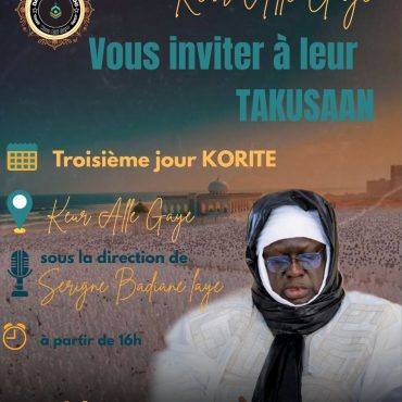 23 Mar 2026 TAKKUSAANU DAHIRA AHOULAHI DE KEUR ALE GAYE- Lundi 23 mars 2026 Dahira Ahloulahi Keur Alé GAYE En savoir plus