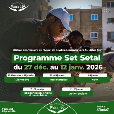 27 Déc 2025 Diamalaye de Yoff — Dakar DEMARRAGE PROGRAMME SET SETAL APPEL AVEC VISION 129 – Samedi 27 décembre 2025 Vision 129 En savoir plus