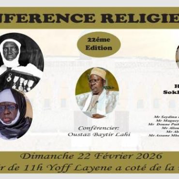 22 Fév 2026 Esplanade de Yoff Layène — Dakar BAYTIR SENE LAHI EN CONFÉRENCE A YOFF LAYENE- Dimanche 22 février 2026 Sokhna Seynabou Lahi bint Baye Seydi Thiaw LAHI En savoir plus