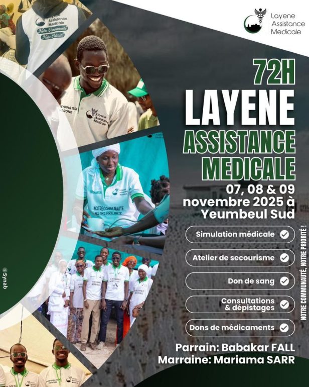 07 Nov 2025 Yeumbeul — Keur Massar 72 HEURES DE LAYÈNE ASSISTANCE MÉDICALE A YEUMBEUL- 07, 08 & 09 novembre 2025 Layène Assistance Médicale En savoir plus