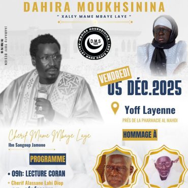 05 Déc 2025 Rue Baye Seydi Thiaw — Dakar JOURNEE DAHIRA MOUKHSININA 2025- Vendredi 05 Décembre 2025 Xaley Chérif Mame Mbaye Lahi En savoir plus